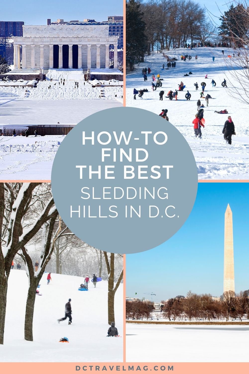While it’s not the best spot, we have seen people sledding down the tiny hills to the left of the Lincoln Memorial Reflecting Pool just before you get to the Vietnam Memorial. The National Mall is much better for building snowmen and having a snowball fight though.
